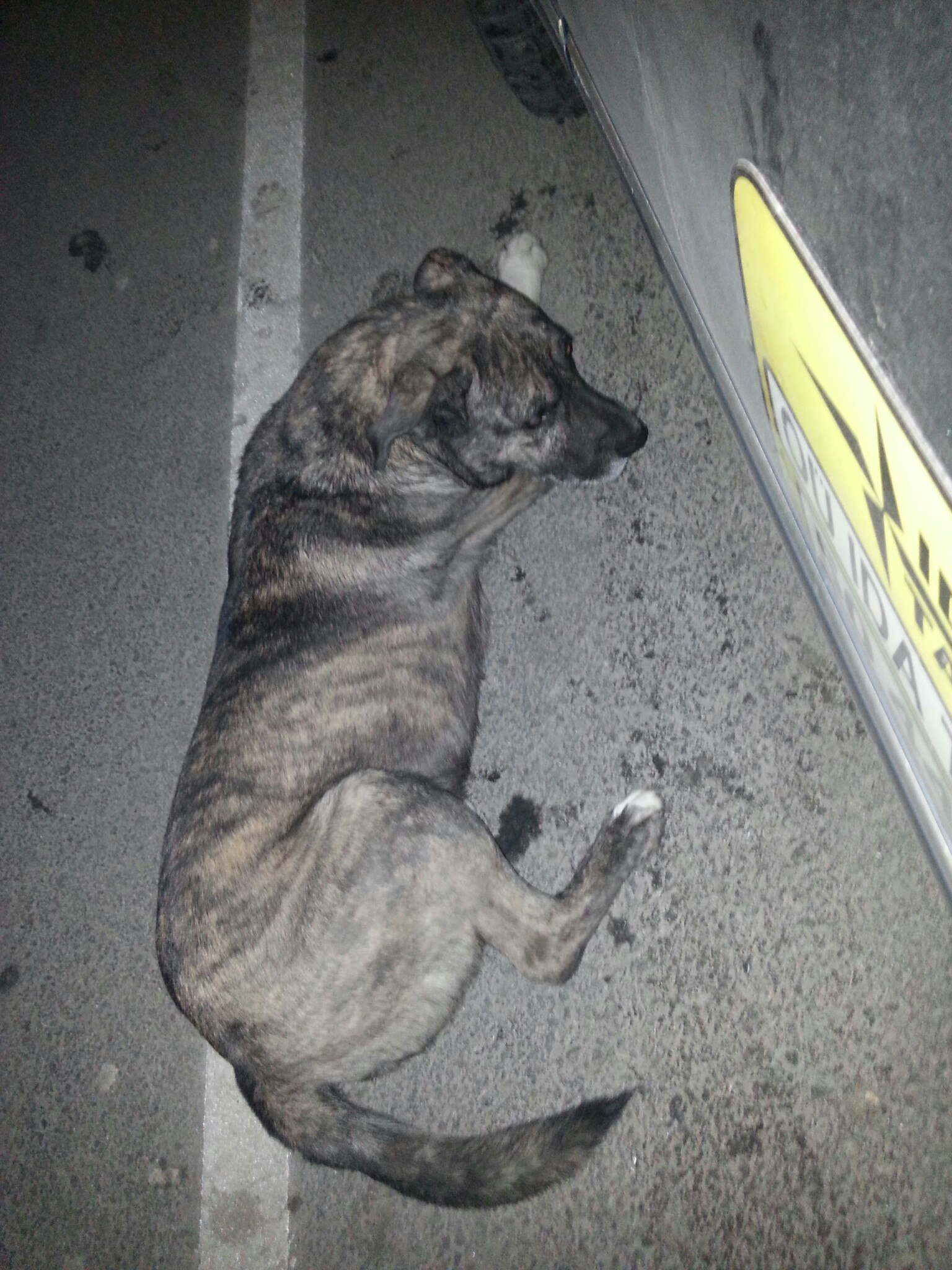 В ночь с 30 на 31 на парковке магазина "Консум" бегала собака. Могу ошибаться, но похож на стаффорда тигрового окраса. Собака кидается на машины (лезет под колеса), но сам по себе, очень добрый. Замечен также был у заправки "Статойл", у домов по четной стороне Выйду, но всегда возвращался на паркову. Пес явно домашний. Хозяин, отзовитесь, боюсь что днем при плотном движении пес угодит под машину!