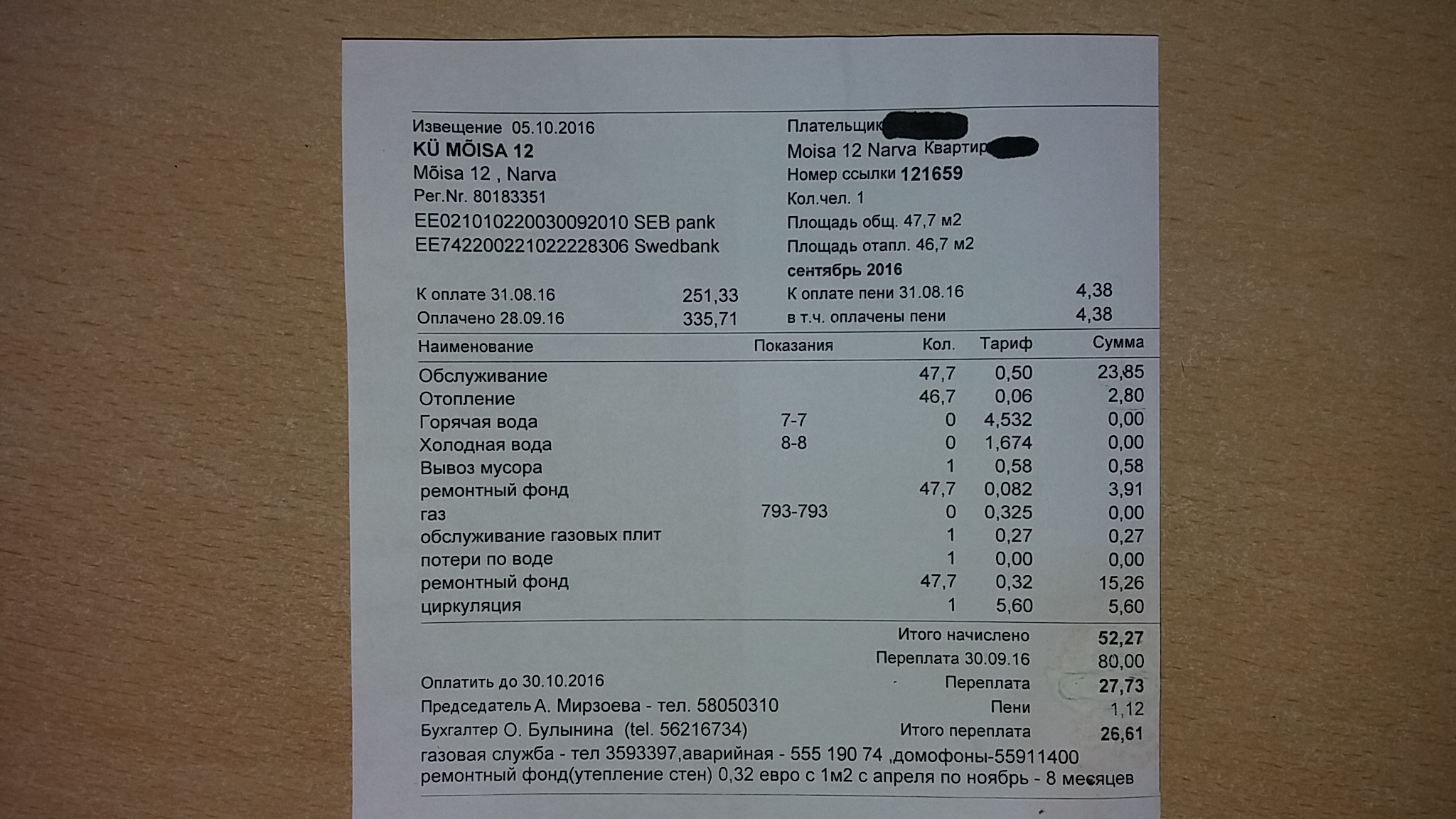 жильцы дома мыйза 12, при оплате счетов за квартплату, будьте особо внимательны, проверяйте каждый пункт, я лично столкнулся с такой ситуацией (см.фото) приписывают пени и тут же пишут:"у вас переплата"