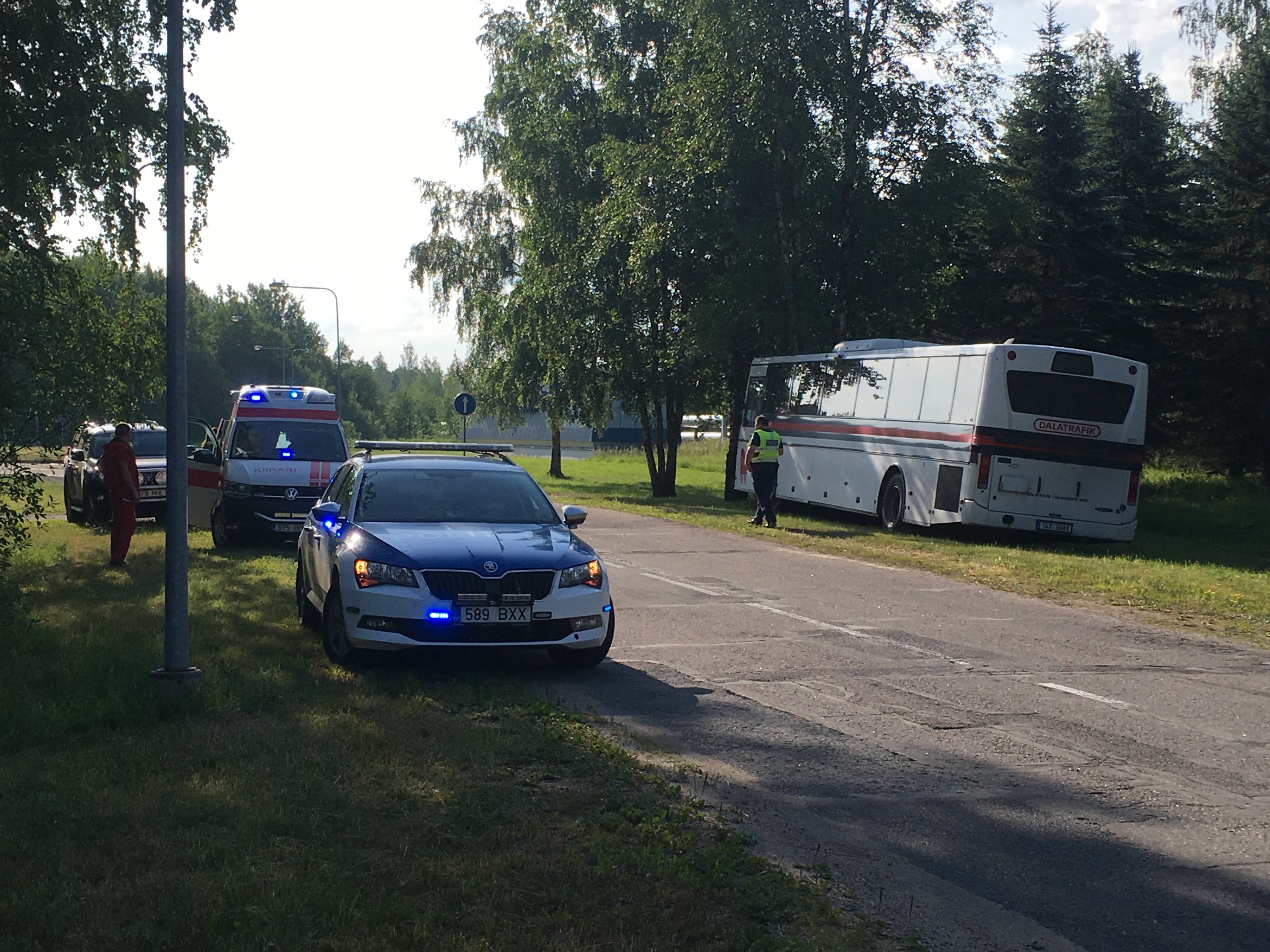 Сегодня утром у Балтийской Электростанции автобус с пассажирами сьехал с дороги и врезался в дерево.