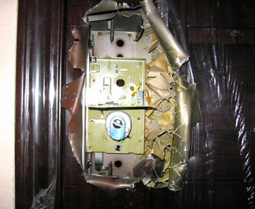 Вот такая вот защитная дверь. Если так дело дальше пойдет и покупатель не будет задумываться о взломостойкости изделия - преступники на дело будут брать из инструментов только открывашку для шпротов, пока еще легально продающуюся в России.