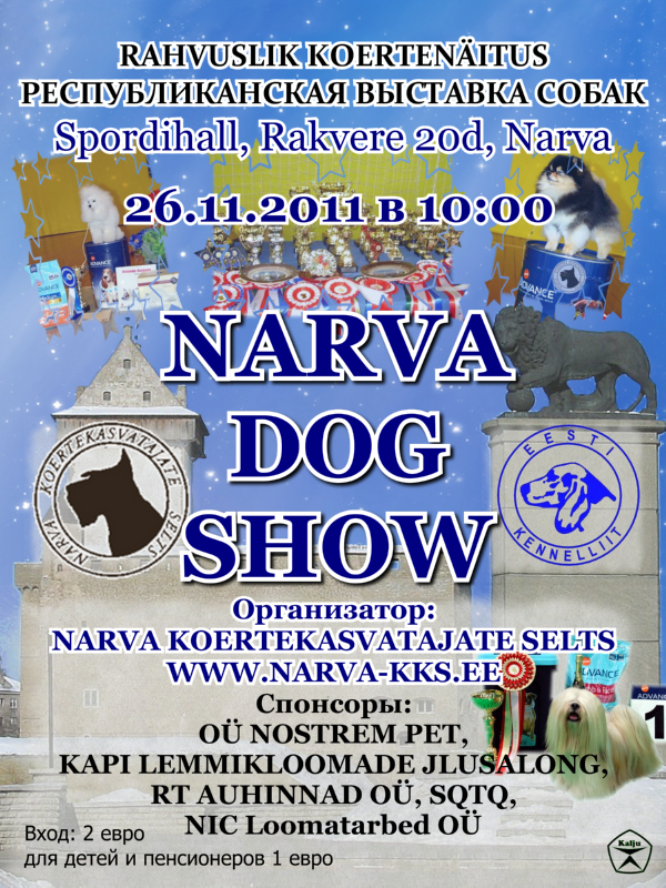 В Нарвском Спортивном холе 26.11.2011 пройдет NARVA DOG SHOW.