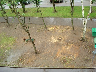Квартирное товарищество Выйду 8 из зеленой красивой зоны с каштанами, липами, березами и кленами сделали вот такой пустырь с пнями и обрубками деревьев. Полюбуйтесь!