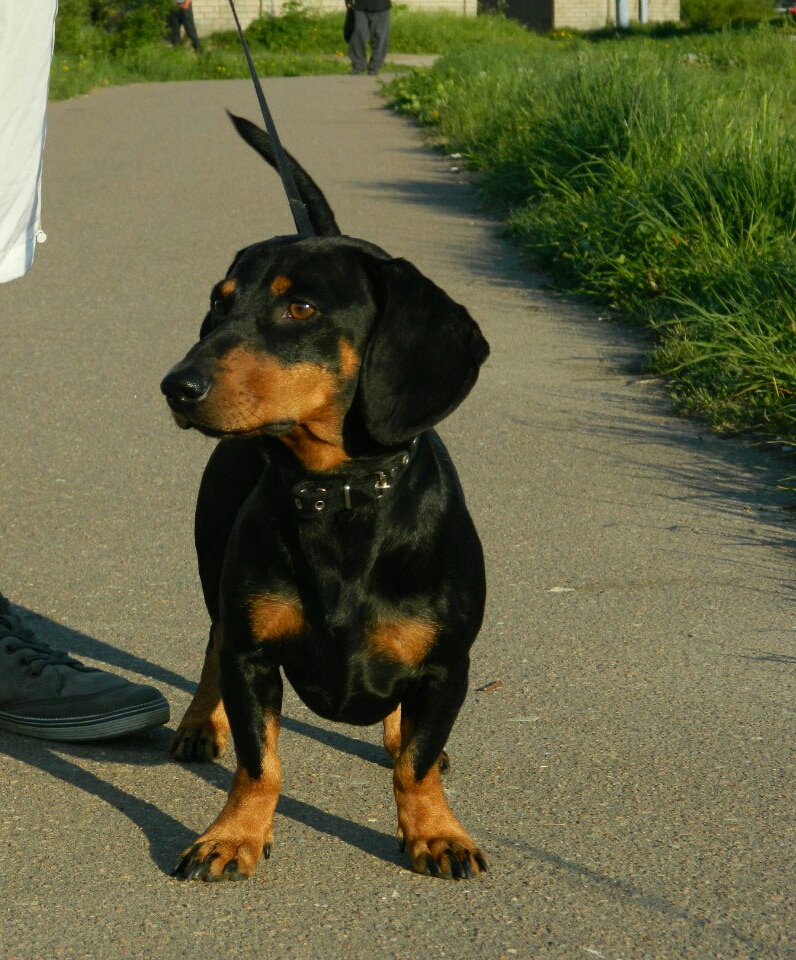 Пропала собака в раёне Призма , с ошейникам и поводком(черная рулетка),такса ,черная с красным подпалом.